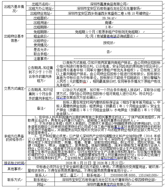 西乡常盛街二巷A栋18号铺物业招租公告